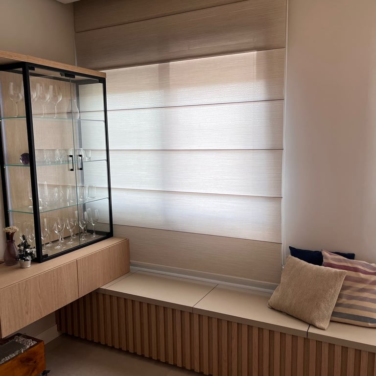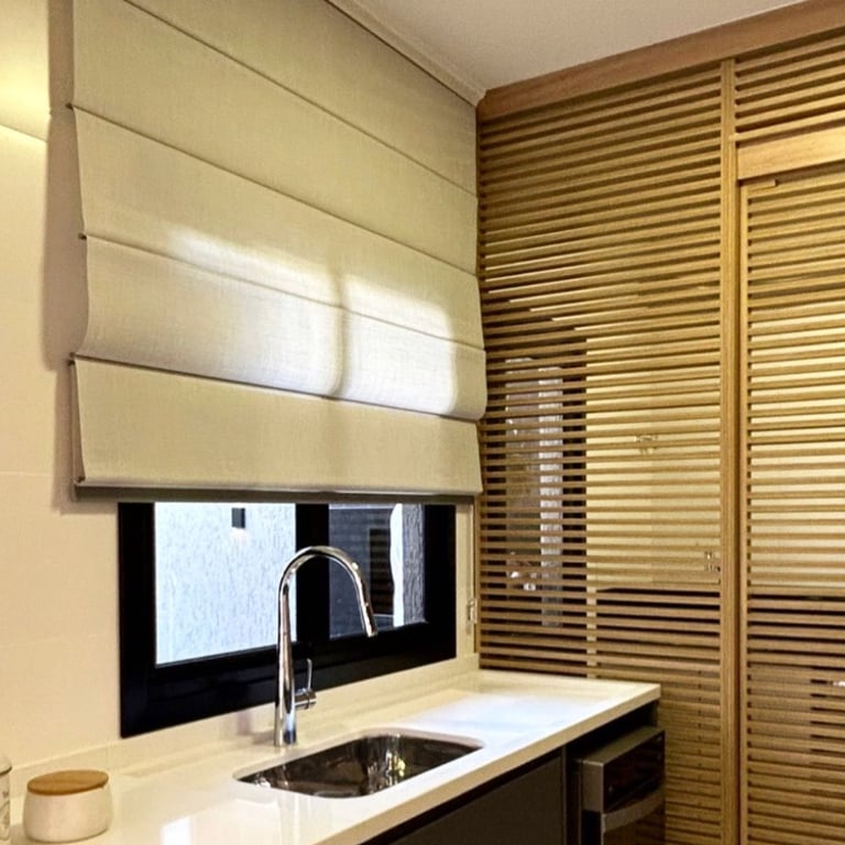 Elegância, beleza e praticidade. Sua principal características é a formação de gomos quando recolhida, dando um charme todo especial na decoração.